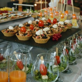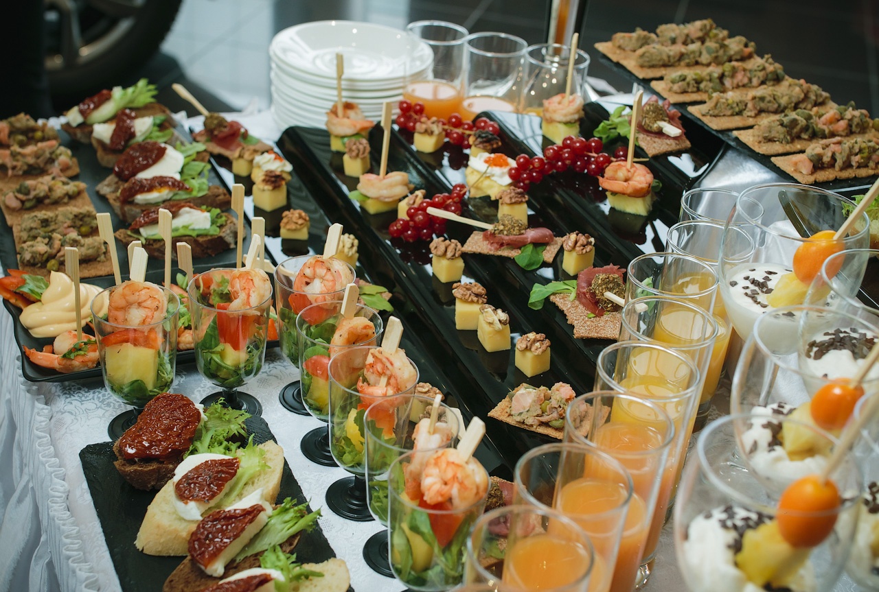 В нашем арсенале готовые предложения для быстрого перекуса сытными закусками, включающие мини пирожки, круассаны, сендвичи, чай, кофе, птифуры, фруктовые нарезки, сырные ассорти и многое другое.